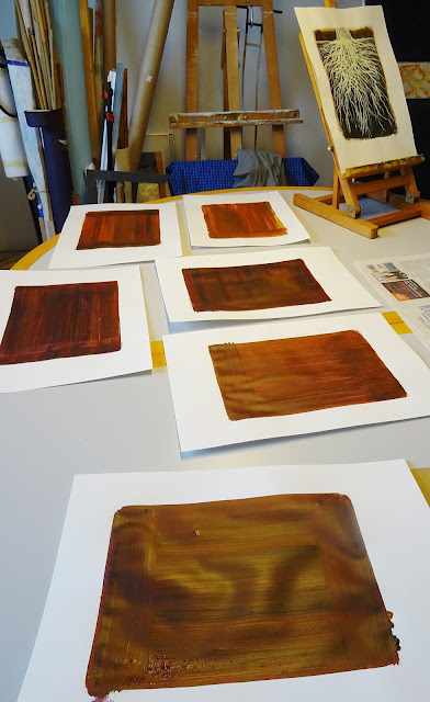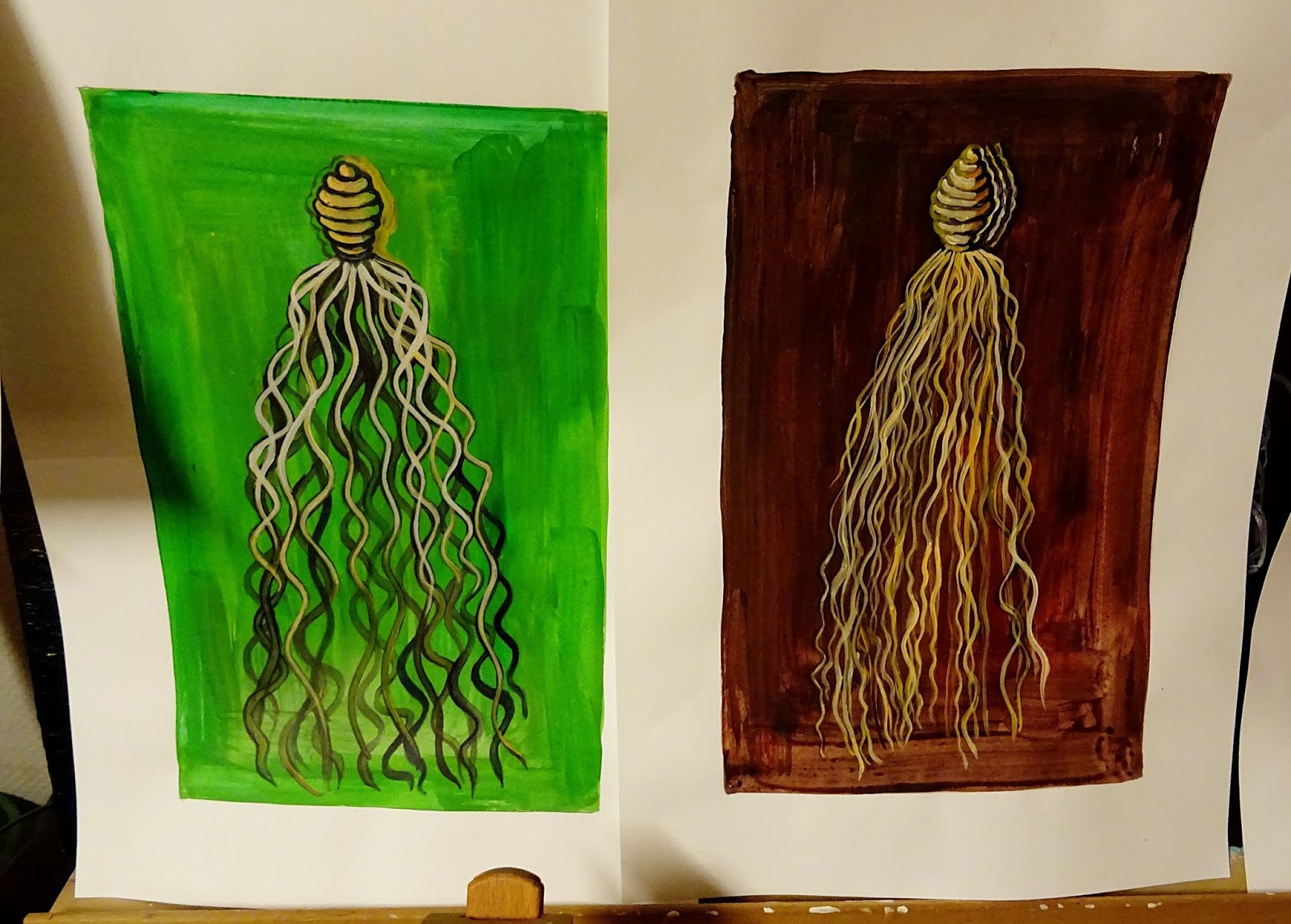Jeg er ved at arbejde mig ind på temaet og er begyndt på disse mindre billeder i akvarel og gouache.....jeg har ladet mig inspirere af en feministisk tænkning, der kalder sig "Hydrofeminisme" og her ses kroppen , landskabet, naturen, planetens velbefindende som et stort sammenhængende hele.....