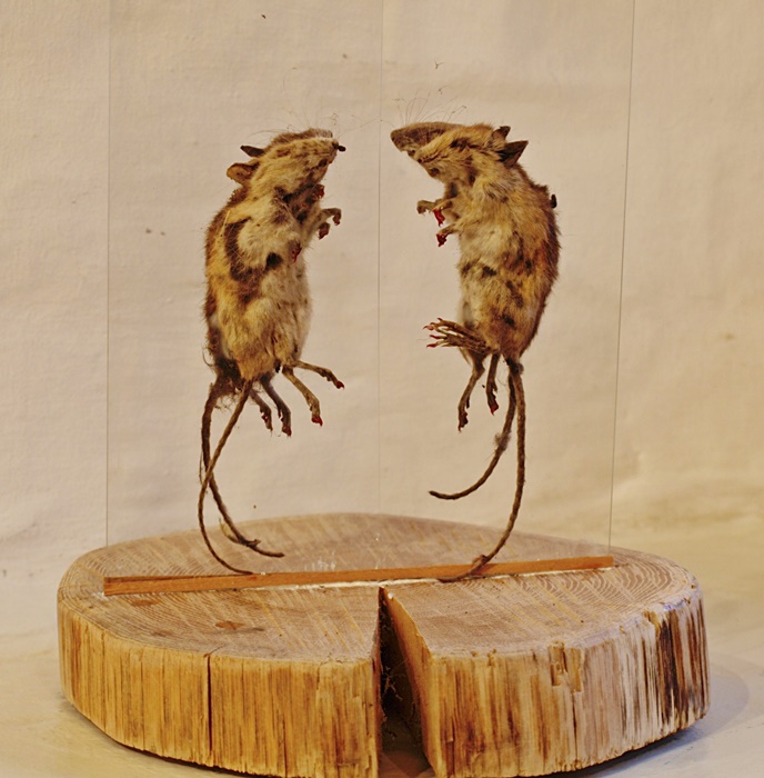 Fotos nedenunder viser fra oven: et ex. på Thomas Lysters konstruerede mikrokosmos, Rakubrændt keramik af Anne-Marie Fink og sidst ses et af mine udstillede landskabsfotografier.